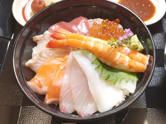 うおざのフードホールは、鮮魚市場の活気をそのままに、お刺身・焼き物・揚げ物など、旬の魚料理を思う存分楽しめる開放的な空間です。約120席の広々としたホールには、全長20メートルを超える料理カウンターが並び、目でも楽しめる華やかな品々を自由に選べます。市場ならではの新鮮な味わいを、気軽に、そして心ゆくまでご堪能ください。